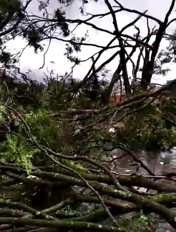 Acredite: a foto é de uma rua de Ubiratã após o temporal da tarde desta terça-feira. O município foi o mais afetado na região. Houve muitas quedas de árvores e de postes, além de casas destelhadas e falta de energia elétrica. Estragos também em Campina da Lagoa e Goioerê, mas menores. Em Ubiratã houve pessoas feridas.