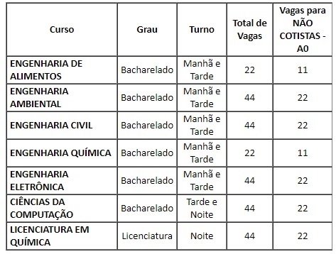 Metade das vagas é para cotistas.
