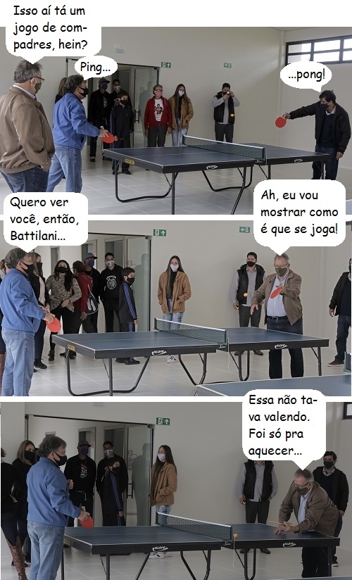 Os cliques são desta sexta-feira, em Campo Mourão, durante a inauguração do Centro de Treinamento de Artes Marciais e Tênis de Mesa, na Praça da Juventude. O prefeito Tauillo Tezelli e os vereadores Sidnei Jardim e Edson Battilani aproveitara para um "pingue-ponguezinho" básico...