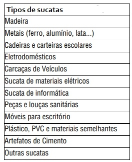 A prefeitura de Campo Mourão abriu chamamento público para doação de sucatas. Pode participar entidades, prinicpalmente as as que atuam na forma de associações ou cooperativas de catadores de materiais recicláveis. Interessados devem levar a documentação na Secreraria de Obras até o dia 8 de julho. Tem sucata de tudo, de veículos a madeira (veja quadro acima).