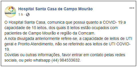 Uma nota da Santa Casa sobre a lotação na UTI geral gerou confusão pelas redes sociais neste domingo.
