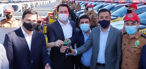 O governo do Estado entregou nesta terça-feira 70 nova viaturas para o Batalhão da Polícia Rodoviária Estadual. São todas camionetes 4x4, cabine dupla. Marca? Mitsubishi L200 Triton Sport. Segundo o governo, todos os postos da PRE serão atendidos, ou seja, vem para Peabiru e Goioerê. No caso goioerense, o assessor Betinho Lima estava lá e fez pose com a chave ao lado do governador Ratinho Jr.