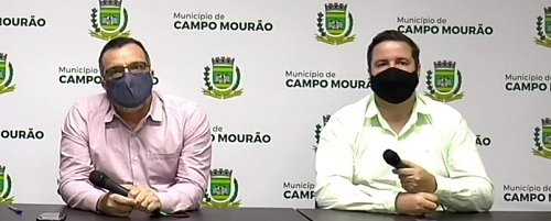 Carlos Alberto Facco, secretário de Coordenação Geral de Campo Mourão, descartando, no momento, um novo fechamnto do comércio não essencial; em live no Facebook, ao lado do presidente da Acicam, Ben-Hur Berbet, sexta-feira.