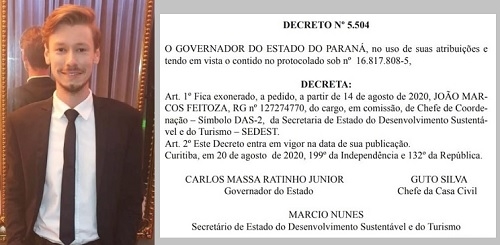 A exoneração saiu nesta sexta, retroativa a 14 de agosto.
