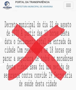 A publicação mentirosa dizia que um novo decreto tinha determinado o fechamento total das entadas da cidade.