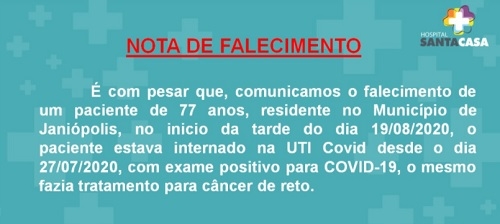 No hospital - A UTI Covid segue com 10 leitos ocupados, todos pelo SUS (66%). Cinco pacientes são de Campo Mourão. Na enfermaria, a taxa de ocupação caiu para 52%, com 13 leitos ocupados (cinco pacientes mourãoenses).