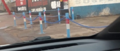 Quando a calçada ganha um cercadinho, com correntes, resta ao pedestre passar pelo meio da rua (no caso, av. Manoel Mendes de Camargo).