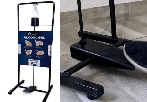 Trata-se de equipamento que libera álcool gel com pedal mecânico.