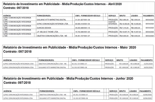 Saiu o relatório de gastos da prefeitura de Campo Mourão com publicidade e propaganda no segundo trimestre - abril, maio e junho. Com propaganda em meios de comunicação não teve nada, mas houve despesas de cerca de R$ 74 mil. Tudo custo de produção (leia-se vídeos, impressos e marketing digital), além de custos internos de agência licitada.