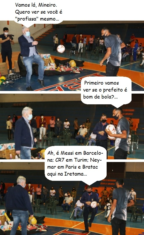 Os cliques são de Iretama, onde o deputado Douglas Fabrício relembrou os tempos de secretário de Estado do Esporte e bateu uma bolinha na hora da entrega de materiais esportivos. Foi na sexta-feira. A emenda para a compra era dele. O prefeito Wilson Bratac e o diretor de Esportes, Huenes Lemos, participaram do evento.