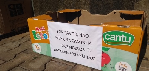 Loja na rua São Paulo, no centro de Campo Mourão, deixou caixas forradas na calçada para abrigar cães de rua nesses dias de frio. Aliás, caixa, não, "caminha dos nossos amigos peludos".