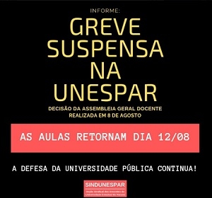 As aulas na Unespar estão sendo retomadas nesta segunda-feira.