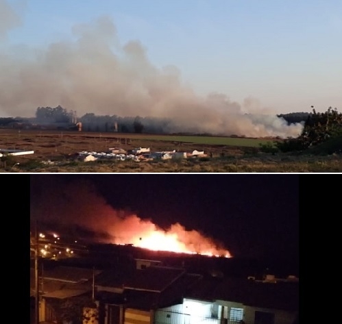 Vista de queimada em Campo Mourão, próximo à saída para Cascavel, nesta segunda-feira. Começou à tarde e seguiu à noite.