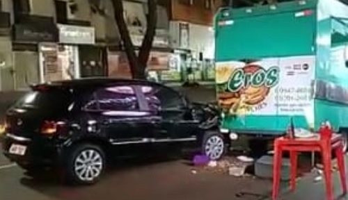 Carro bate em trailer de lanche na av. Manoel Mendes de Camargo, centro de Campo Mourão. Foi no fim de semana.
