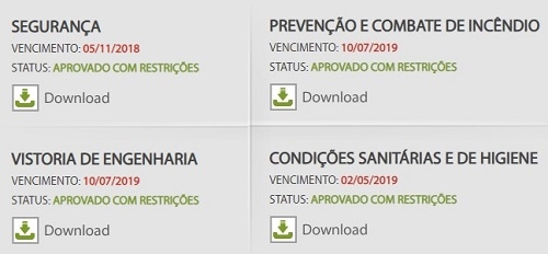 O de condições sanitárias e higiene venceu em maio e o de segurança, então, em novembro do ano passado.
