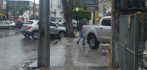 Na rua São Paulo, centro de Campo Mourão, parte da camionete ficou sobre a calçada.