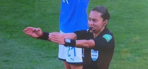 Edna já comandou três jogos no mundial, sendo o último Itália 2 x 0 China (foto).