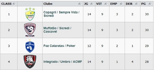 O time foi a 31 pontos, contra 30 de Copagril e Cascavel, que têm um jogo menos.