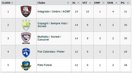 O Foz tem 29 pontos, mas com três partidas menos que a ACMF.