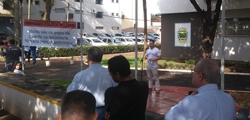 A manifestação por segurança foi em frente à prefeitura e teve a presença do prefeito Tauillo Tezelli.