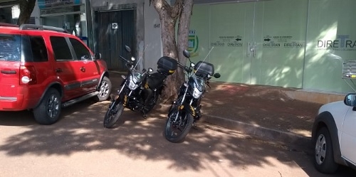 "Há uma semana estas motos do Diretran ficam estacionadas em frente ao órgão, porém não tem placa exclusivo para motos e estão na vaga de carro. A lei é pra todos mesmo? Estão estacionadas corretamente ?"