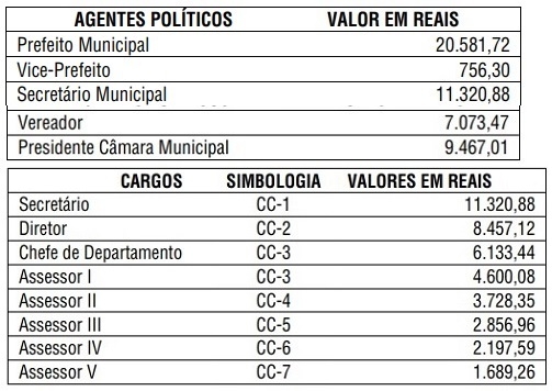 O salário bruto do prefeito, por exemplo, passou para R$ 20,5 mil.