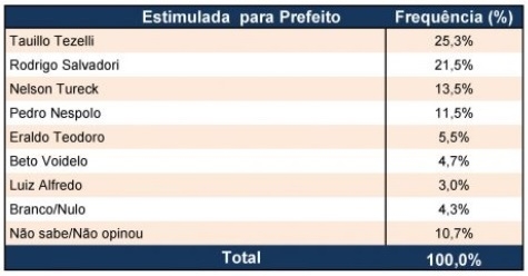 O prefeito Tauillo Tezelli aparece na frente, com 25,3%.