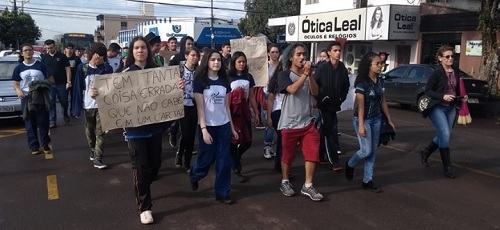 Esses foram alguns dos "gritos de guerra" no protesto que estudantes fizeram em Campo Mourão nesta quinta-feira.