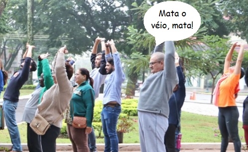O prefeito Tauillo Tezelli estava viajando e o vice-prefeito Beto Voidelo não apareceu. Aí coube ao secretário Cristiano Calixto, que é o coordenador geral interino, fazer o discurso na abertura oficial do Dia do Desafio em Campo Mourão. Só discurso, não. Ele também teve de fazer usa parte na sessão de alongamentos. Ossos do ofício, uai!....