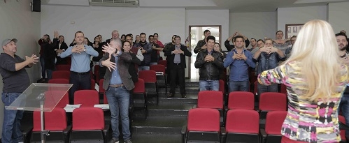 Vereadores e gestores públicos de vários municípios da região participaram nesta quarta-feira do 1º Ciclo de Capacitação. A promoção foi da Acamdoze, Uvepar e Iprade. O evento teve seis paineis e levou o dia todo. Como era Dia do Desafio e com a vereadora Nelita Piacentini presente, não teve jeito: todo mundo teve que fazer exerciciozinho para contar como atividade física.