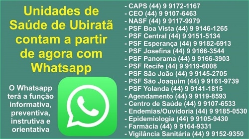 A prefeitura de Ubiratã está apostando no Whats App para melhorar o atendimento na Saúde.