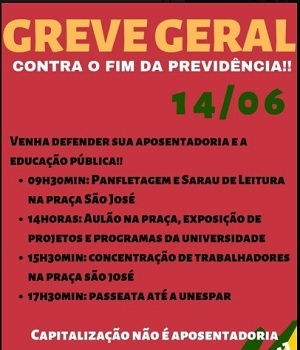 Em Campo Mourão sindicatos farão panfletagem no centro.