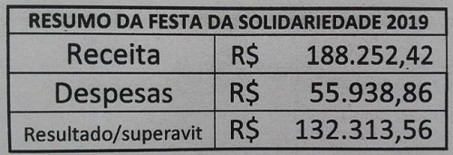 A Festa da Solidariedade do Lar dos Velhinhos de Campo Mourão teve um lucro de R$ 132,3 mil.