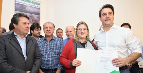 O governador Ratinho Jr esteve em Pitanga nesta sexta-feira. Participou da reunião da Amocentro e liberou R$ 2,3 milhões para investimentos em seis municípios. Um deles é Roncador, que ficou com R$ 969 mil. Olha aí a prefeita Marília Gonçalves recebendo a papelada. O secretário de Estado Márcio Nunes também participou. Roncador fará urbanização de calçadas públicas.