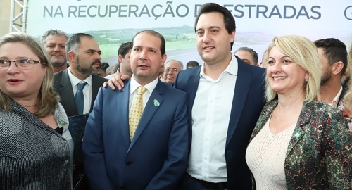O governador Ratinho Jr anunciou nesta terça-feira um programa para recuperação de estradas. Disse que serão investidos R$ 2 bilhões em três anos em 12 mil km de rodovias estaduais. O evento no Palácio Iguaçu reuniu vários prefeitos, incluindo da região, como Marília Gonçalves (Roncador) e Angela Kraus (Farol).