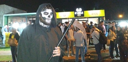 Segue a programação do Maio Amarelo em Campo Mourão. Nesta quinta-feira foi a vez da "blitz educativa" em bares noturnos. Pelos números oficiais, Campo Mourão teve 24 mortes no trânsito no ano passado, o terceiro maior número do Estado. Não foi à toa que a "morte" participou do evento, com a foice na mão e tudo. Era o ator Rick Bueno. O Maio Amarelo termina dia 30 com o 1.o Fórum Municipal do Trânsito.