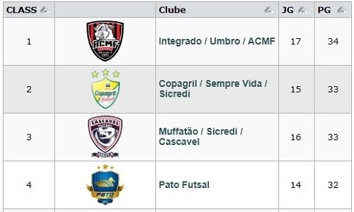 Foi a 34 pontos após vencer o Foz, neste domingo, por 4 a 0.