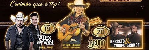 No sábado tem Bruna Viola (ganhadora do Grammy Latino) e Barreto & Campo Grande.