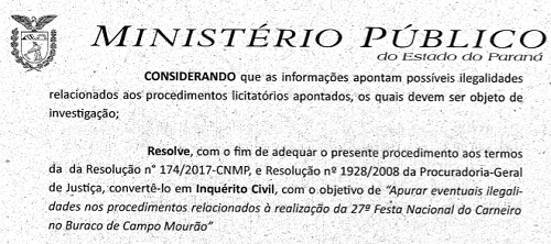 O Ministério Público vai investigar indícios de ilegalidades em licitações da Festa do Carneiro no Buraco.