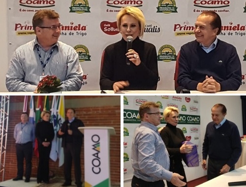 Olha quem esteve nesta quinta-feira em Campo Mourão. Sim, a apresentadora global Ana Maria Braga (Mais Você). Ela é garota propaganda da Coamo e cumpriu agenda na cooperativa. Esteve até no Encontro de Inverno que acontecia na Fazenda Experimental. Para a imprensa, contou que experimentou todos os Alimentos Coamo e que, após a visita, saiu mais confiante ainda na qualidade dos produtos.
