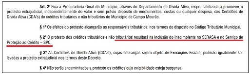 As "punições" estão previstas no decreto que regulamentou o protesto dos inadimplentes de Campo Mourão.
