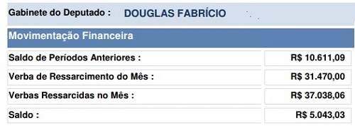 O gabinete do deputado estadual Douglas Fabrício teve despesas de R$ 37 mil em junho.