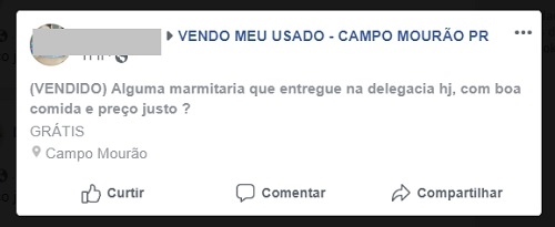 A mensagem foi postada nesta quinta-feira em grupos de classificados de Campo Mourão no Facebook,