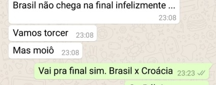 Pra quem duvida, Jardim mostra "prints" de conversas em grupos no Whats App, onde ele faz a "previsão" com Croácia na final ainda antes do fim da primeira fase. Ah, tá pensando o quê? Sidnei Jardimic...