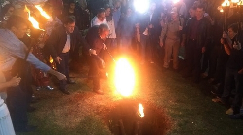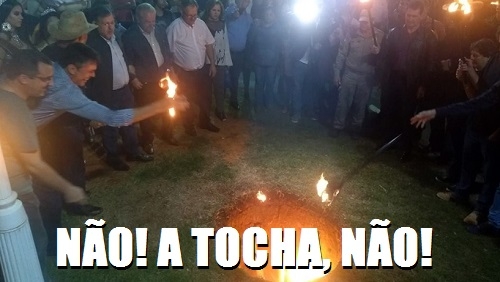 O clic é de sábado à noite, na Festa do Carneiro no Buraco. Depois de acender o buraco número um, prefeito Tauillo Tezelli e autoridades seguiram para o pavilhão dos buracos, onde repetiram a cena. Desta vez, no entanto, sem ninguém jogou a tocha no buraco. Ufa...
