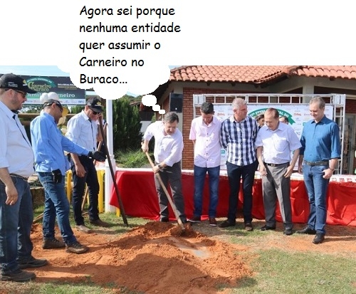 Olha aí mais um clic da abertura do buraco número um, domingo, na Festa Nacional do Carneiro no Buraco. Como manda a tradição, as autoridades têm de pegar no cabo da enxada e ajudar a retirar a terra que vai sobre a tampa metálica que cobre o buraco. O prefeito Tauillo Tezelli puxou a fila...