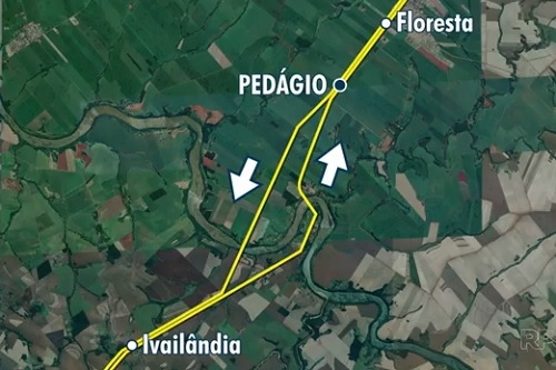Ilustração da RPC (Globo) ajuda a entender porque a partir de agora está mais perto vir de Maringá a Campo Mourão do que ir daqui pra lá. A nova ponte sobre o rio Ivai, que faz parte da duplicação da PR-317, evita um desvio no traçado que existe no acesso à "ponte velha". O novo trecho encurta a viagem em cerca de 1 km, mas só é usado "de lá pra cá". A obra custou R$ 30 milhões.