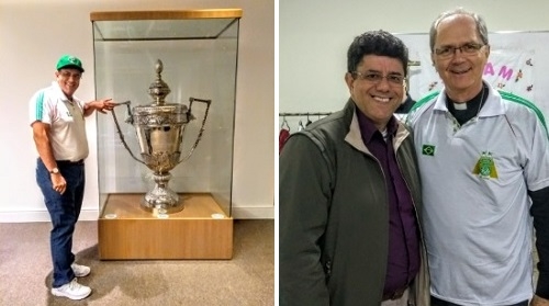 E aí, o Palmeiras tem ou não tem Mundial? O jornalista Ilivaldo Duarte jura que tem. Mostra até foto do troféu, que fez ao visitar a sede do clube, em São Paulo, junto com um caravana dos Amigos Palmeirenses da Arcam. Na volta, Ilivaldo presentou o bispo d. Bruno Versari com a camisa da APA. D. Bruno, que é palmeirense, vestiu de pronto.