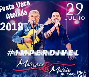 Foi definido o show deste ano da Festa da Vaca Atolada. O prato típico de Boa Esperança será servido em 29 de julho. Depois do almoço se apresenta a dupla Matogrosso & Mathias. O show vespertino é tradição da festa de Boa Esperança, famosa na região pela organização e pelo requinte. A prefeitura ainda não divulgou detalhes, como preço do convite e pontos de venda.