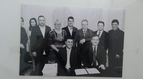 Agora, ao invés da cena das escadas, tem até foto de Tauillo com os vereadores que o acompanharam na posse.